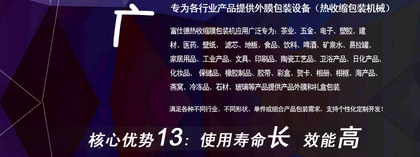 富仕德包裝機(jī)械公司坐落于廈門市,創(chuàng)建于一九九八年,是一家專業(yè)從事科研、設(shè)計(jì)、制造和銷售熱收縮機(jī),熱收縮包裝機(jī),熱收縮膜包裝機(jī),全自動(dòng)熱收縮包裝機(jī),全自動(dòng)熱收縮膜包裝機(jī)為一體的實(shí)業(yè)公司,生產(chǎn)多個(gè)系列的包裝機(jī)械產(chǎn)品:包括熱收縮機(jī),全自動(dòng)熱收縮包裝機(jī),熱收縮包裝機(jī),全自動(dòng)熱收縮膜包裝機(jī),熱收縮膜機(jī),熱收縮膜,收縮膜包裝機(jī),熱收縮膜機(jī),食品包裝機(jī),茶葉包裝機(jī),多功能包裝機(jī),全自動(dòng)包裝機(jī),開箱機(jī),封箱機(jī),包裝材料,POF熱收縮膜等,客戶遍布全國(guó)各地和海外地區(qū),其中福建本地客戶主要集中在廈門、泉州、漳州、福州、莆田等,公司定位于設(shè)計(jì)制造中高端的全自動(dòng)熱收縮膜包裝機(jī)械:包括食品包裝機(jī)、陶瓷包裝機(jī)、茶葉包裝機(jī)、壁紙包裝機(jī)、濾芯包裝機(jī)、飲料包裝機(jī)、衛(wèi)浴包裝機(jī)、日化產(chǎn)品包裝機(jī)、電子包裝機(jī)、五金包裝機(jī)、橡膠制品包裝機(jī)、墻紙包裝機(jī)、膠帶包裝機(jī)、化妝品包裝機(jī)、保健品包裝機(jī)、印刷品包裝機(jī)、彩盒包裝機(jī)、圓柱體包裝機(jī)、餐具包裝機(jī)、家居用品包裝機(jī)、瑜伽墊包裝機(jī)等適應(yīng)各行業(yè)不同形狀、單件、組合包裝產(chǎn)品;用于各行業(yè)產(chǎn)品的批量化包裝生產(chǎn);技術(shù)領(lǐng)先、制造精良,結(jié)實(shí)耐用; 我們具備廠家:從研發(fā)、生產(chǎn)、銷售、售后,以及穩(wěn)定的質(zhì)量和可控合理的價(jià)格等優(yōu)勢(shì);公司擁有多項(xiàng)國(guó)家專利技術(shù)并通過歐盟CE認(rèn)證,產(chǎn)品采用進(jìn)口知名品牌核心部件等,經(jīng)過近20年專業(yè)研發(fā)、設(shè)計(jì)經(jīng)驗(yàn)使得富仕德包裝機(jī)械產(chǎn)品更加卓越、穩(wěn)定、效率更高,更節(jié)約包材成本。