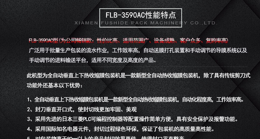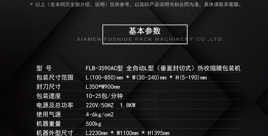 行業(yè)使用機型:FLB-3590AC型-全自動L型熱收縮膜包裝機(垂直封切式)