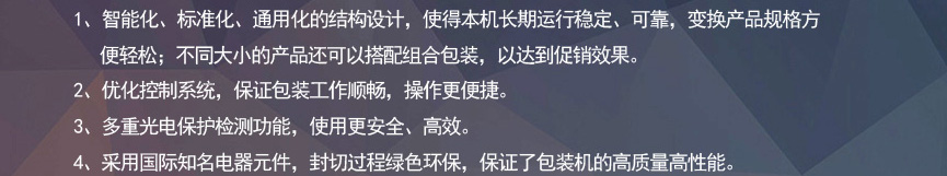 擁有多項(xiàng)專利技術(shù) 數(shù)千平標(biāo)準(zhǔn)廠房 批量標(biāo)準(zhǔn)化生產(chǎn) 可定制開(kāi)發(fā)和自動(dòng)化流水線搭建! 超前技術(shù)團(tuán)隊(duì) 先進(jìn)加工工藝 高精度加工設(shè)備 近20年專業(yè)研發(fā)經(jīng)驗(yàn)不斷改進(jìn)、創(chuàng)新、突破!我們定位于專注做中高端全自動(dòng)熱收縮膜包裝機(jī),請(qǐng)不要拿我們和不同定位的廠家對(duì)比!我們是源頭工廠…