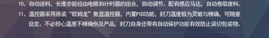 長(zhǎng)發(fā)包裝枕式包裝機(jī)主要性能特點(diǎn): 1、 雙伺服控制,袋長(zhǎng)即設(shè)即切,無(wú)需調(diào)空走,一步到位,省時(shí)省膜。 2、 彩色觸摸屏控制,參數(shù)設(shè)定方便快捷,可儲(chǔ)...