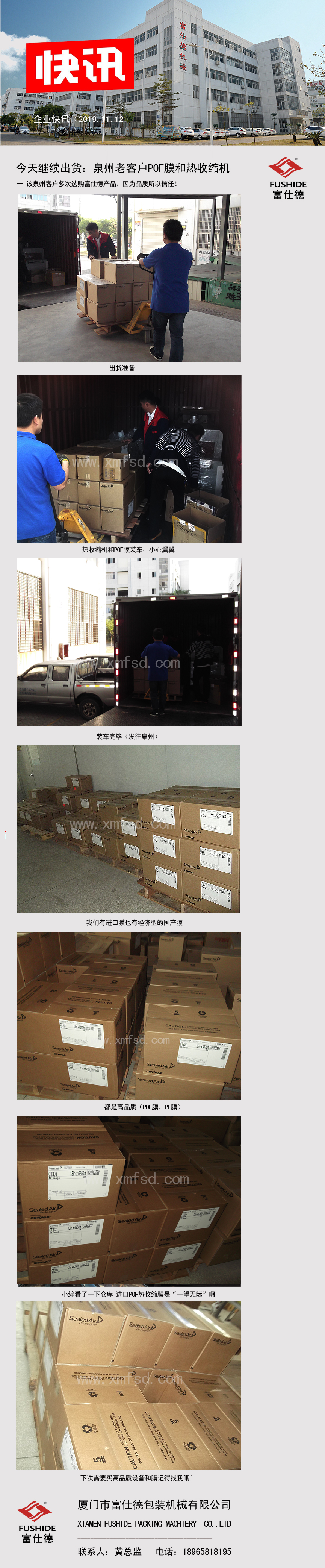 今天繼續(xù)出貨:泉州老客戶POF膜和熱收縮機