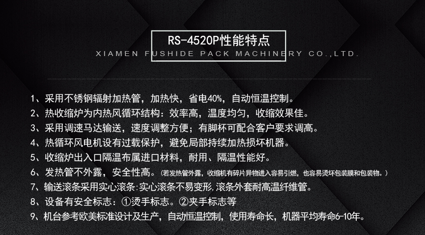擁有多項(xiàng)專利技術(shù) 數(shù)千平標(biāo)準(zhǔn)廠房 批量標(biāo)準(zhǔn)化生產(chǎn) 可定制開發(fā)和自動(dòng)化流水線搭建! 超前技術(shù)團(tuán)隊(duì) 先進(jìn)加工工藝 高精度加工設(shè)備 近20年專業(yè)研發(fā)經(jīng)驗(yàn)不斷改進(jìn)、創(chuàng)新、突破!我們定位于專注做中高端全自動(dòng)熱收縮膜包裝機(jī),請不要拿我們和不同定位的廠家對比!我們是源頭工廠…
