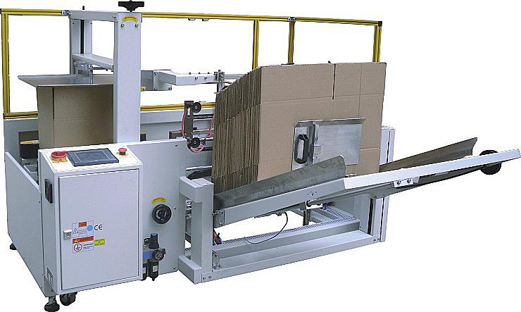 開箱機(jī)也叫紙箱成型機(jī),箱子底部按一定程序折合,并用膠帶密封后輸送給裝箱機(jī)的專用設(shè)備。自動(dòng)紙箱成型機(jī)、自動(dòng)開箱機(jī)是大批量紙箱自動(dòng)開箱、自動(dòng)折合下蓋、自動(dòng)密封下底膠帶的流水線設(shè)備,機(jī)器全部采用PLC+顯示屏控制,大大方便操作,是自動(dòng)化規(guī)模生產(chǎn)必不可少的設(shè)備。