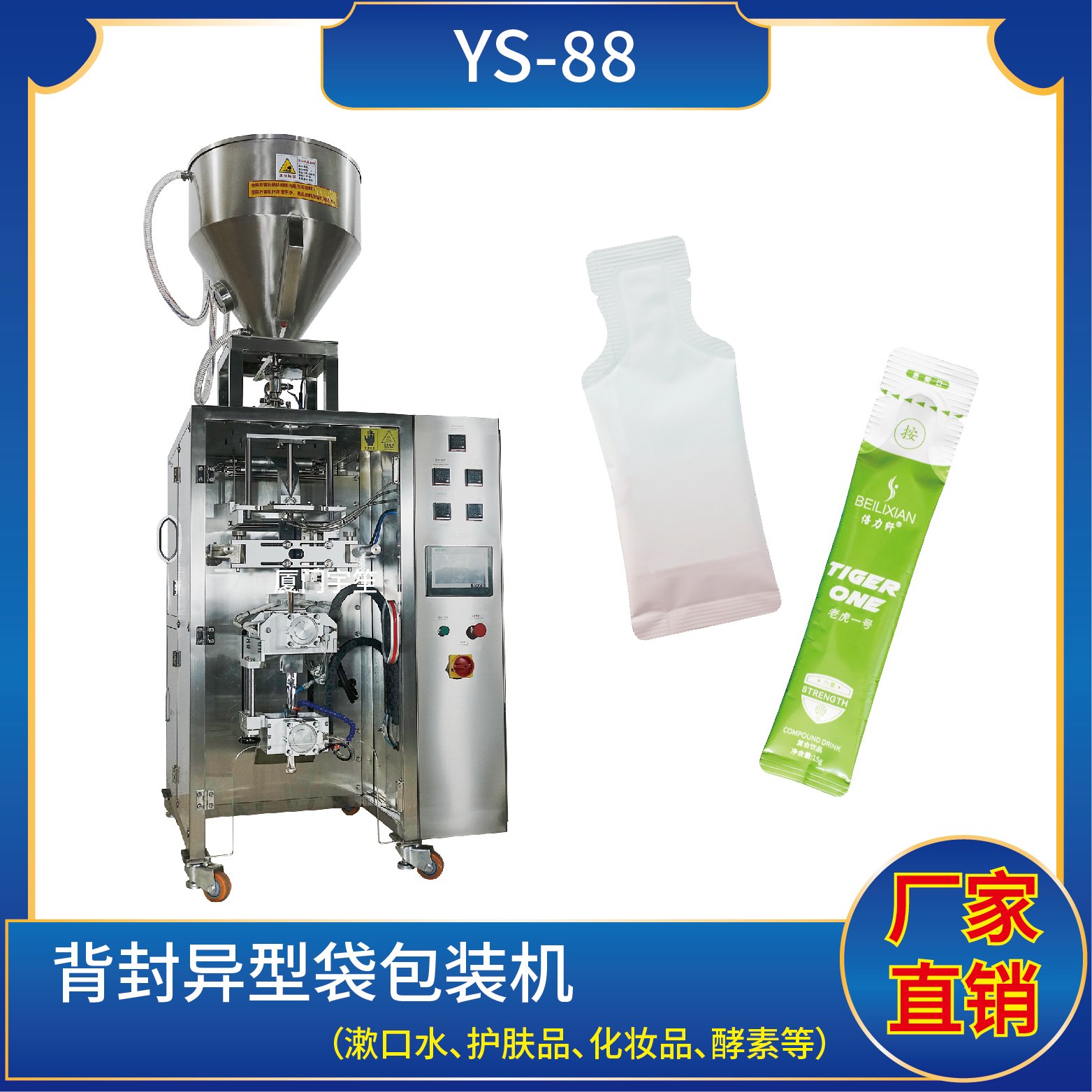 適用于食品、醫(yī)藥、化工、化妝品行業(yè)中液體、醬料等物品的異形袋計(jì)量包裝。可自動完成制袋、計(jì)量、下料、封合、分切、計(jì)數(shù)、且可根據(jù)客戶要求配置打印批號等功能。